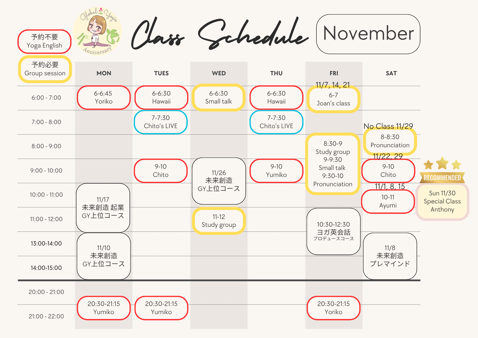 みなさんと一緒に英語でのヨガクラスの楽しんでいきたいと思います♡